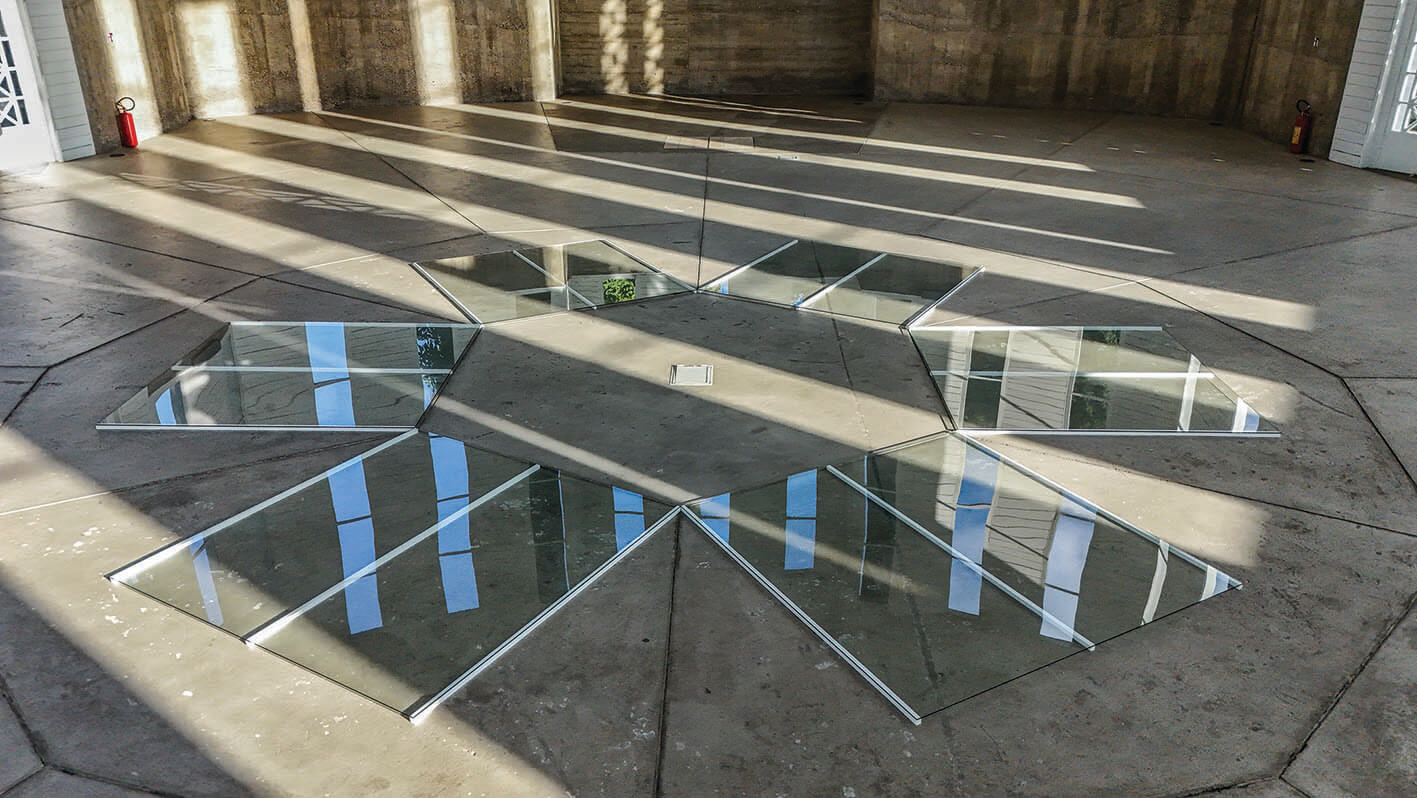 Odgovorna načelu iteracije, odnosno ponavljanja, jedan se kvadrat sastoji od šest kvadrata, multipliciramo li ga ili dijelimo, uvijek se zadržavaju iste međusobne proporcije, a ponajprije striktnim geometrijskim postulatima tlocrta, precizno izračunata instalacija oživljuje upravo zahvaljujući onome što bi donesenoj slici smetalo, a to je neprekidna promjena svjetla u prostoru i odraza njezinih prozora u staklu na podu, odnosno onoga što se kroz te prozore vidi. Svjedočimo privremenim segmentima zrcalnog portreta i, slijedom toga, neprestano drukčijim dijalozima tih segmenata. Kao i različitim fragmentima tog dijaloga s obzirom na poziciju gledatelja. Zauzimajući bilo koju poziciju, uvijek nam točka gledanja ima neku perspektivu, uvijek se pravokutne izdužene svjetline od prozora slamaju po zidovima ili podu pod nekim kutom, različitim od zrcalnog odraza, često se i prelamajući jedno preko drugog, stvaraju složenu svjetlosno-zrcalnu igru. Dakako, neprestano novu, ne računajući oblake, vjetar i slične detalje, nema dva ista sata u danu, kao što nema ni dva ista dana s obzirom na poziciju Zemlje, koliko god naizgled neznatne bile promjene, one su neizbježne, načelo univerzalnog poretka slikovito je pokazano na uzorku Francuskog paviljona.
